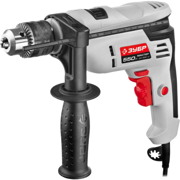 Дрель Зубр ДУ-550 ЭР оборудована надежным ключевым патроном для фиксации оснастки и предназначена для сверления дерева и металла, гипсокартона, пластика, легкого бетона, кирпича. Она может работать в безударном режиме и в режиме сверления с ударом, обеспечивая большую эффективность работы с минеральными материалами. Система плавной регулировки оборотов, примененная в этой модели мощностью 550 Вт, позволит выбрать оптимальную скорость вращения шпинделя для сверления любых заготовок.