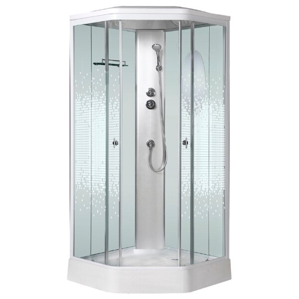 Стенки кабины изготовлены из каленого стекла. Задние стенки белое стекло, передние стекла прозрачные с рисунком "мозаика".