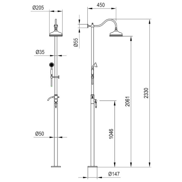 Душевая система напольная с круглой лейкой в стиле модерн: