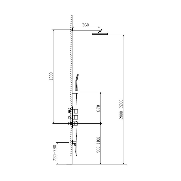 • Размер верхнего душа: 230 x 230 мм