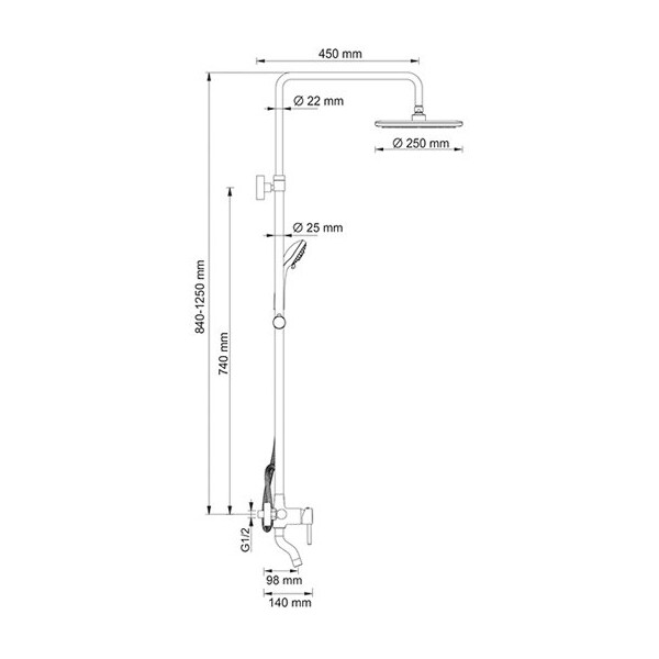 • Стойка для душа, Ø 25мм регулируемая по высоте