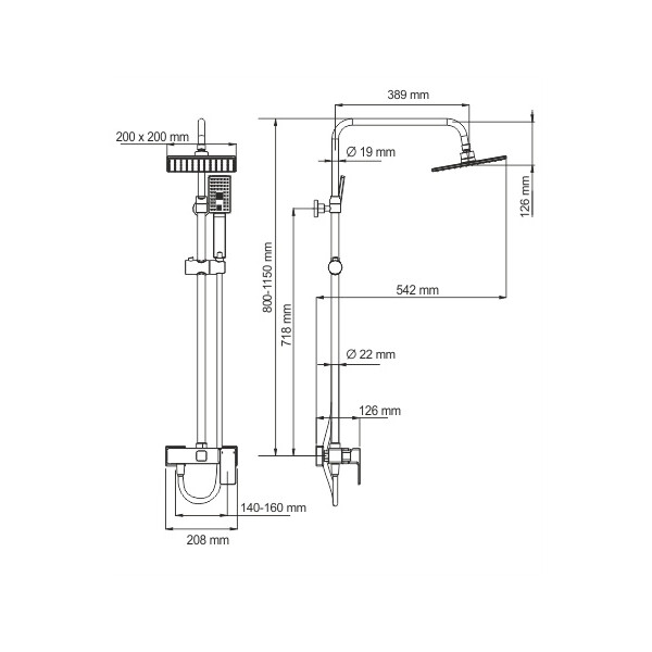 • Размер лейки верхнего душа: 200 х 200 мм, 144 форсунки, ABS-пластик