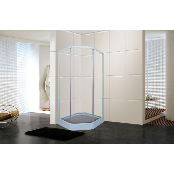 Parly ZEP91 - это душевой уголок на низком пятиугольном поддоне с прозрачными стёклами, стандартных размеров 90х90 см. Стёкла закалённые, ударопрочные, без рисунка. Поддон в комплекте.