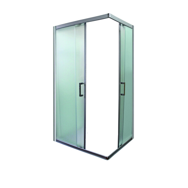 Душевое ограждение для ванной комнаты квадратное с боковым регулировочным профилем и саморегулирующимися металическами, хромированными, двойными   роликами.
