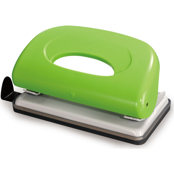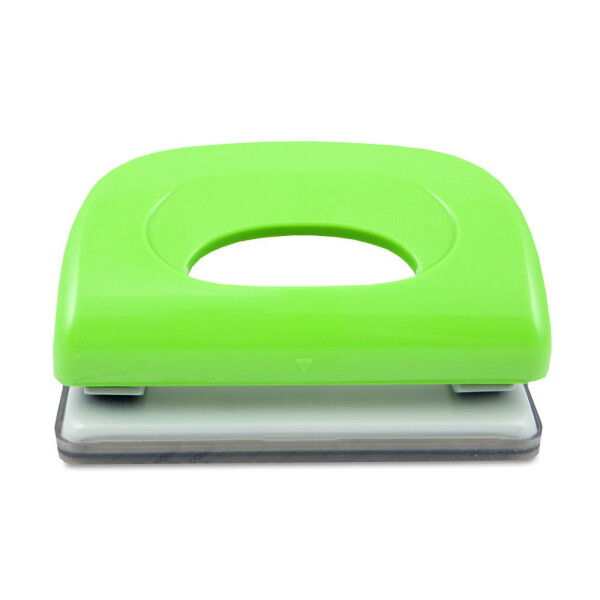 Дырокол KW-trio серии Dolphin яркого зеленого цвета. Способен пробивать до 10 листов бумаги плотностью 80гр/м2. Диаметр отверстий 6мм, снабжен пластиковой выдвижной линейкой и поддоном для конфетти.