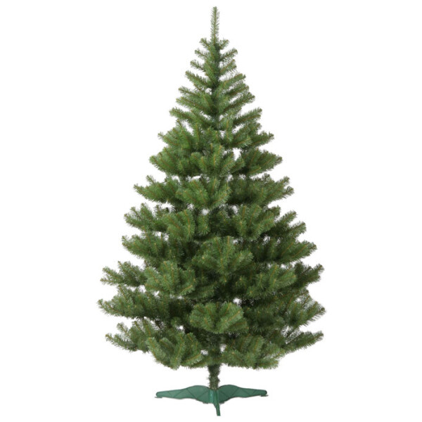 Классическая искусственная ель с изящной кроной. Мягкая матовая хвоя темно-зеленого цвета, ветви елки заканчиваются большим количеством мелких отростков.