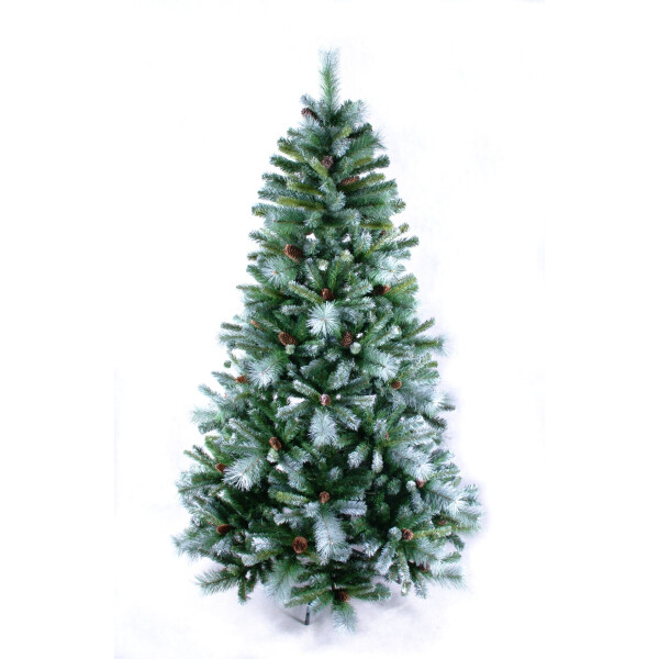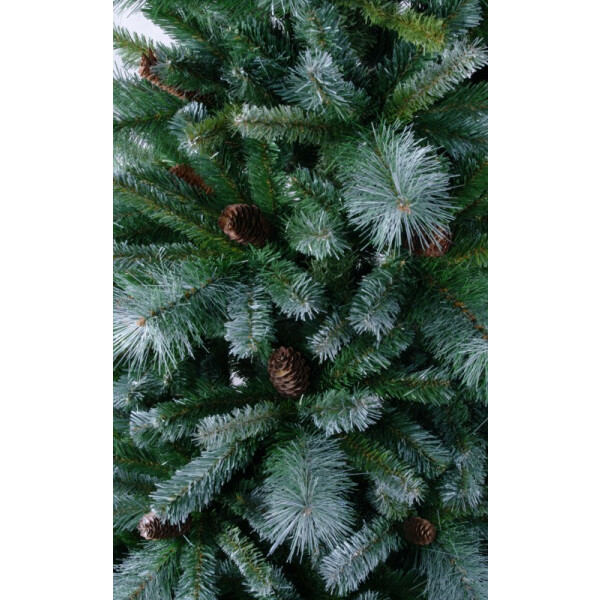 Стильная и пышная елочка Мендоза – практичное решение для украшения дома на новогодние праздники и Рождество. Главное отличие этой модели – сочетание трех типов веточек с хвоинками из пленки ПВХ и лески различной длины и цвета, а также дополнительный декор в виде шишек. Ветки легко вставляются в промаркированные пазы на стволе.