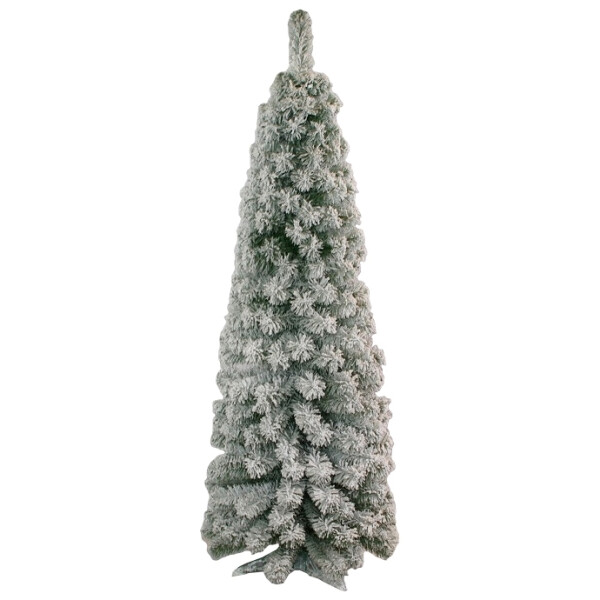 Ель темно-зеленого цвета, заснеженная, хвоя пленка, ветви жестко прикреплены к стволу.