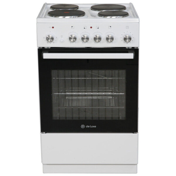 Компактная плита электрическая DE LUXE весит 39 кг, шириной она 50 см, глубиной 50 см и высотой 85 см, поэтому превосходно впишется в кухни маленьких габаритов. Имеет 4 конфорки разной мощности и размера, а также духовку на 43 л. Простая в использовании и удобная в очистке плита оснащена механическими поворотными переключателями и варочной поверхностью из эмалированной стали.