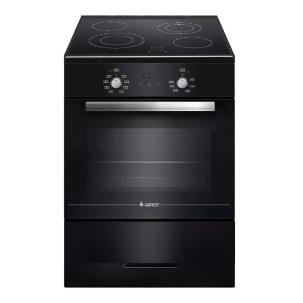 Духовой шкаф при объеме 55 л оснащен вертелом, грилем и шашлычницей, что указывает на его многофункциональность. Очищается камера вручную. Блокировка дверцы делает духовку безопасной в доме, где есть дети. Электрическая плита GEFEST ЭП Н Д 6560-03 0058 дополнена электронным таймером, часами, дисплеем и сенсорной панелью управления. Под духовым шкафом располагается вместительный ящик для посуды.