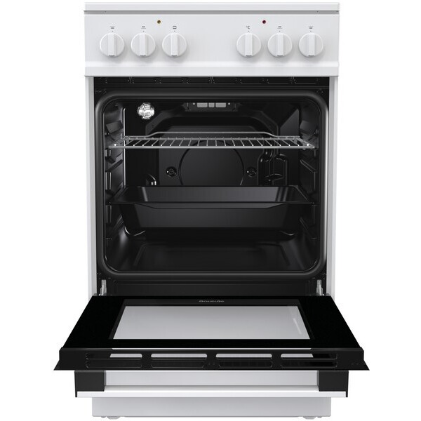 Стеклокерамическая плита Gorenje EC5121WG-B оборудована четырьмя спиральным конфорками и электрической духовкой BigSpace. Особенность конструкции духового шкафа в том, сводчатый потолок спрятан за передней верхней стенкой. Горячий воздух свободно циркулирует по всему пространству, что способствует равномерному пропеканию и прожариванию. Вариогриль PerfectGrill состоит из большого и малого нагревательных элементов, их можно включать одновременно и по отдельности.