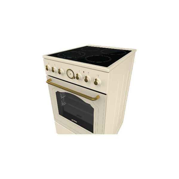 Стеклокерамическая варочная поверхность плиты оснащена двухконтурной зоной нагрева, которая позволяет использовать посуду различного размера. Для каждой конфорки имеется индикатор остаточного тепла, который показывает, что зона еще горячая и к ней нельзя прикасаться. Гладкую варочную поверхность легко чистить, кроме того рамка слегка приподнята, чтобы убежавшая жидкость не проливалась на пол.