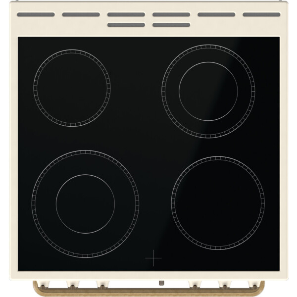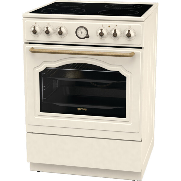 Электрическая плита Gorenje выполнена в ретро-стиле. На панели управления расположены эргономичные механические переключатели и электронный программатор с аналоговым дисплеем. Две из четырех конфорок Hi-Light имеют расширяющуюся зону нагрева, позволяя использовать посуду разного диаметра. Варочная поверхность из стеклокерамики устойчива к высоким температурам.