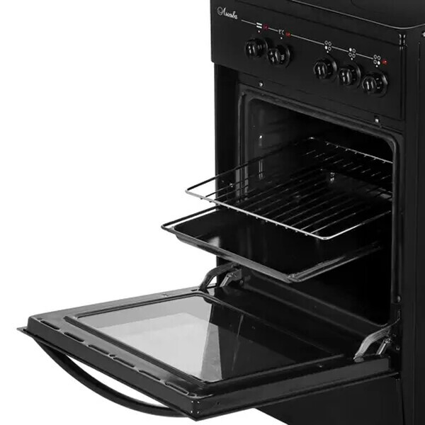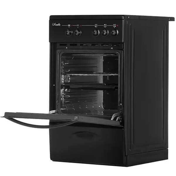 Для работы духовой шкаф получил верхний и нижний ТЭНы, которые можно комбинировать. Благодаря подсветке вам не придется открывать дверцу, пока внутри готовится бисквит или запеканка. Управлять работой электрической плиты Лысьва удобно за счет поворотных переключателей.