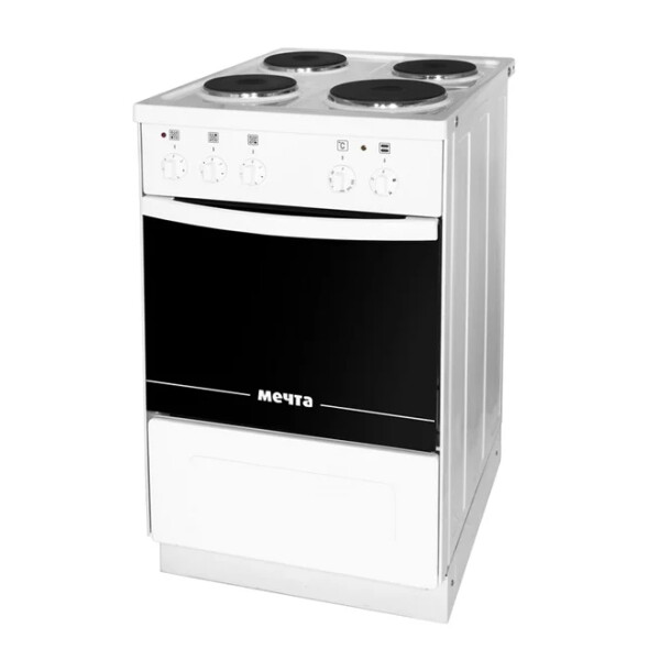 Электрическая плита Мечта 12-06 предельно проста в управлении. Она имеет стандартные плоские 4 конфорки, которые равномерно нагреваются, и объемную духовку с подсветкой, разогревающуюся до 300 градусов. Представленная модель снабжена термостатом и поворотными ручками.