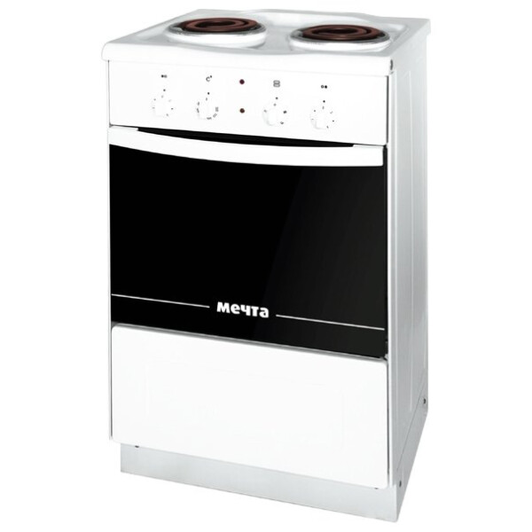 Электрическая плита Мечта 29 - классическая модель для небольших кухонь. Плита подходит для помещений со стандартным напряжением электропроводки. Варочная поверхность покрыта стеклоэмалью белого цвета и оснащена двумя спиралевидные конфорками с пятью ступенями мощности. На удобной панели управления располагаются четыре выключателя поворотного типа. Плита предусматривает индикатор включенного состояния конфорок и духовки.