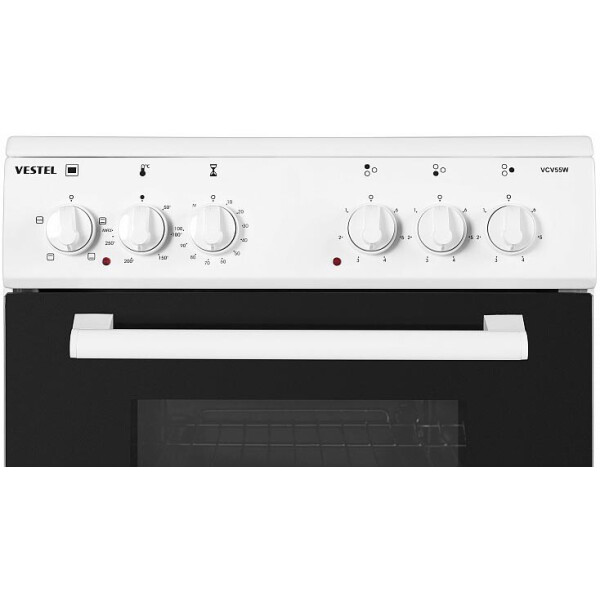 В электрической плите с электрической духовкой Vestel VC V55W все соответствует последним тенденциям моды и качества. Максимальное удобство и безопасность обеспечивает варочная поверхность из стеклокерамики. Фронтальное управление работой прибора максимально доступно, а внешний вид плиты, исполненный в классическом белом цвете, станет достойным украшением Вашей кухни. Представленная модель располагает тремя варочными зонами различного размера и мощности. Вместительный духовой шкаф с 3-мя режимами нагрева обеспечит приготовление жаренных блюд и разнообразной выпечки, а электрический гриль поможет разнообразить привычное меню. В электрической плите с электрической духовкой Vestel VC V55W есть свои функциональные особенности: термостат, механический таймер, освещение в духовке.
