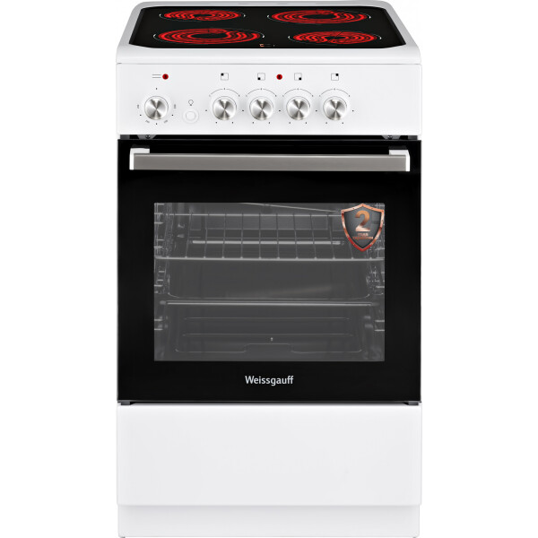 Электрическая отдельностоящая плита Weissgauff шириной всего 50 см, оснащенная духовкой с впечатляющим объемом 60 литров, а также стеклокерамической панелью с 4 Hi-Light конфорками - это сочетание великолепной функциональности и практичности, воплощенное в бытовой технике, которая станет сердцем вашей кухни на долгие годы.