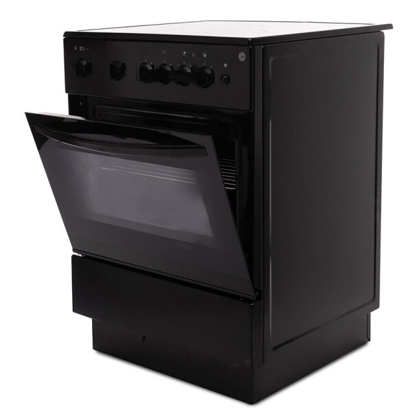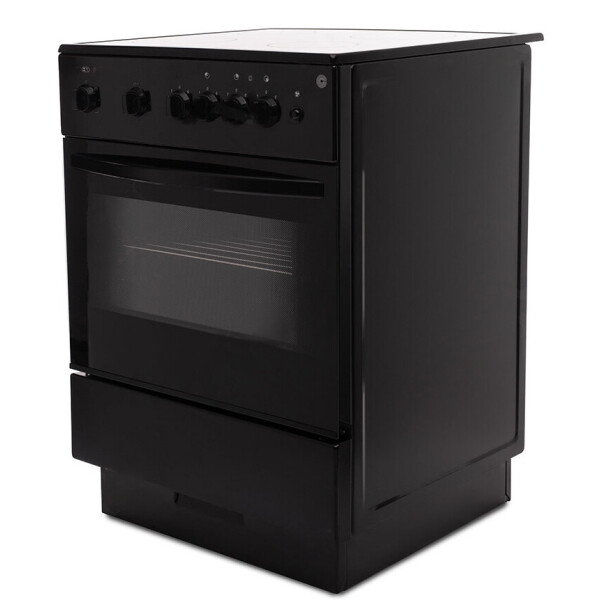 Комбинированная плита с шириной 60 см исполнена в элегантном черном цвете. Электрические конфорки управляются поворотными регуляторами, расположенными на передней панели. Простейшее управление поможет с комфортом использовать плиту любому человеку.