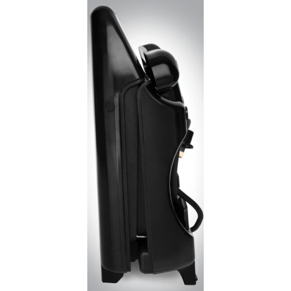 Скошенный стальной верхний корпус и стальная ручка. Логотип на внутренней панели. Принципиально новый дизайн - современный вид. Антипригарные пластины. Готовит до 7 порций гриля. Поддон для жира и капель с системой фиксации. Регулируемая задняя нога для приготовления под углом (мясо) или в плоском состоянии (сэндвичи, панини). Вертикальное хранение, отсек для шнура. Индикатор разогрева и готовности к работе.