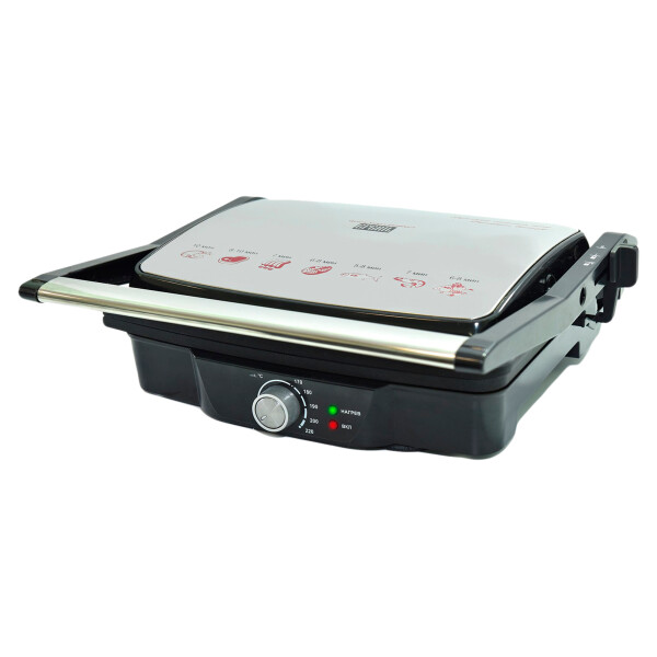 Электрический контактный гриль. Готовит вкуснейшие блюда за считанные минуты, удаляет лишний жир. Гриль имеет большую поверхность, которой будет достаточно для приготовления 4-х кусков мяса.