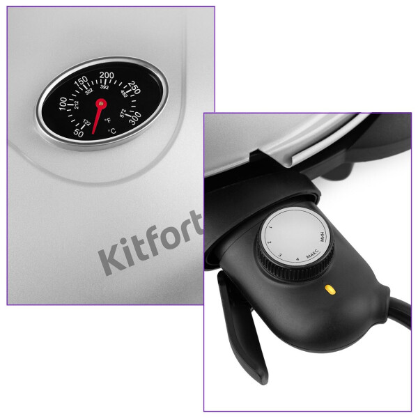 Электрогриль КТ-1657 BBQ Master совмещает в себе сразу 2 прибора: гриль и барбекю. Идеально приготовит мясо, рыбу, овощи, бутерброды практически везде, где есть доступ к электричеству: в гараже, на балконе, на улице, на веранде, на летней кухне. Благодаря регулятору t вы можете быстро приготовить блюдо на высоких t (гриль) и при средних t (барбекю). В электрогриле также можно готовить методом томления, жарки и копчения. Оснащён термостатом для поддержания установленной t и термометром. Нагревательная панель изготовлена из алюминия с нанесённым антипригарным покрытием. ? панели ребристые, ? - гладкая. Крышка легко откидывается, её можно держать открытой либо снять для удобсвтва приготовления барбекю-блюд. Размер панели 440х330