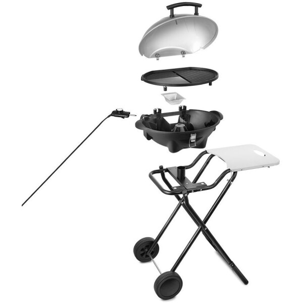 Благодаря колёсам гриль можно легко перемещать. Широкий столик удобен для разделывания и подготовки продуктов. На крючке удобно хранить пакеты с продуктами. Опоры оптимальной высоты для комфортной работы с грилем без лишней нагрузки на спину.