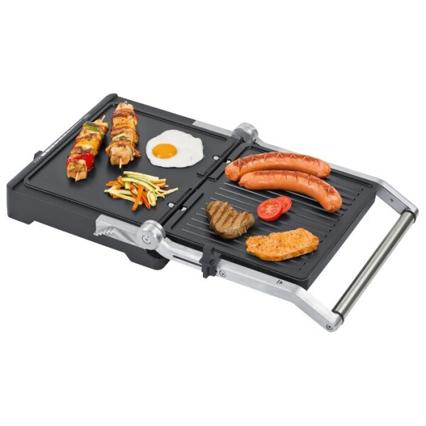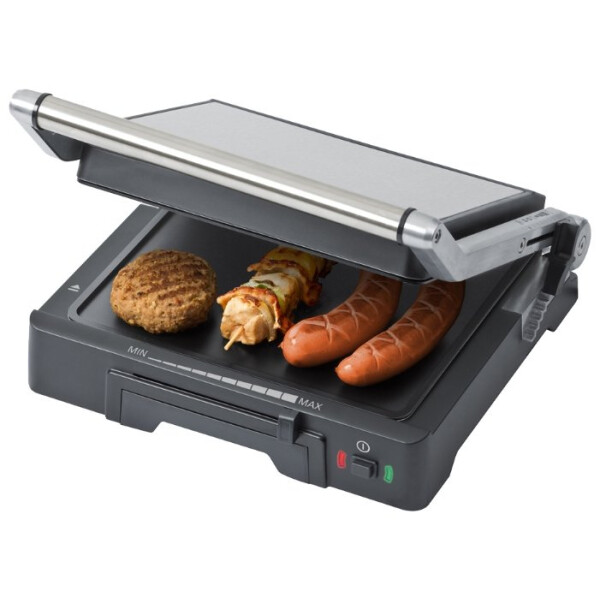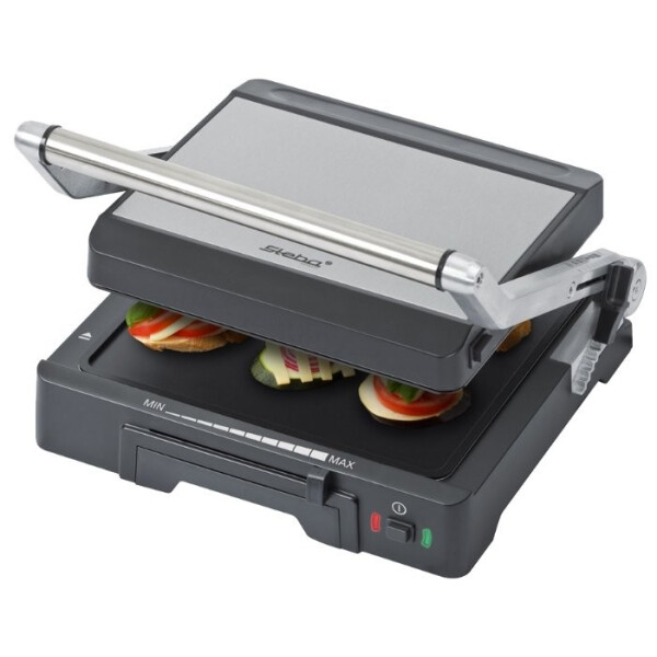 Удобным грилем Steba FG 70 можно пользоваться не только дома, но и на даче. Обширная площадь рабочей поверхности позволяет приготавливать блюда на этом устройстве двумя способами. Вы быстро пожарите мясо, закрыв крышку устройства, благодаря двустороннему нагреву. Либо можно приготовить в два раза больше продуктов за счет встроенных в верхнюю часть корпуса шарниров, позволяющих откинуть крышку устройства на 180 градусов и использовать ее как плиту для жарки. Нагревающиеся пластины гриля оснащены антипригарным покрытием, за счет которого готовящиеся на Steba FG 70 продукты не прилипают к поверхности и покрываются хрустящей ароматной корочкой.