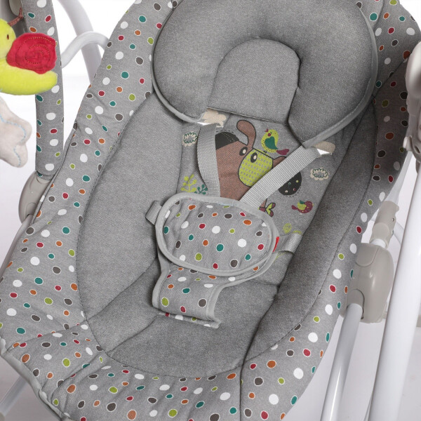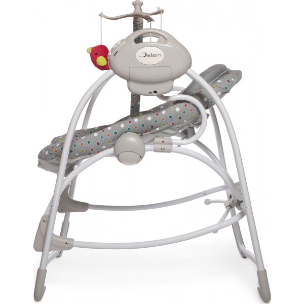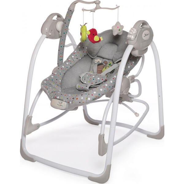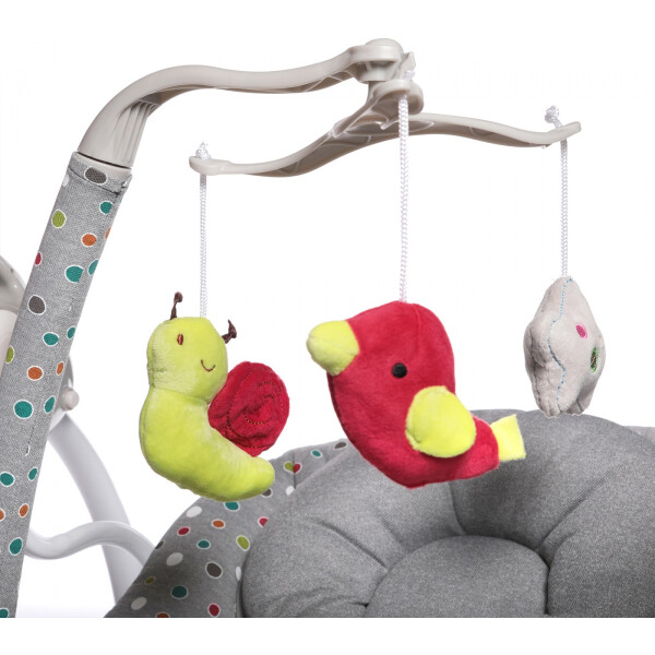 Flappy новая модель электрокачелей для самых маленьких. Конструкцию отличает простота и компактность, что открывает широкие возможности для перевозки изделия и создания малышу уютной, домашней обстановки в любом месте. Электрокачели 2 в 1 это и качели и шезлонг. Для максимально комфортного удобства ребенка предусмотрены два положения спинки и 6 режимов скорости укачивания. Качели оснащены музыкальным блоком с возможностью проигрывания 12 мелодий. Индивидуальный режим воспроизведения настраивается при помощи встроенного таймера и регулировки громкости. Спокойствие родителей гарантирует 5-точечные ремни безопасности, что является стандартом. В комплекте имеется съемная дуга с игрушками. Обивка качелей выполнена из ткани с грязеотталкивающими свойствами, чехол легко снимается для стирки. Качели работают от сети 220в.