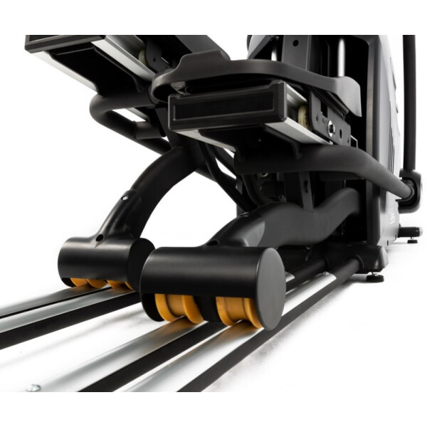 Данная модель оснащена маховиком массой 13 кг, благодаря такому весу достигается максимальная плавность хода педалей, что добавляет пользователю дополнительный комфорт во время занятий. Тренажер располагает 20 уровнями нагрузки, чего будет достаточно для интенсивных и качественных тренировок спортсменам разным уровням подготовки. Длина шага варьируется в пределах 46 — 61 см, Q-factor составляет 60 мм. Длина педалей составляет 38 см, покрытие прорезиненное, нескользящее.