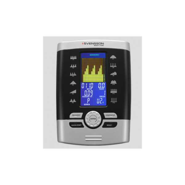 Эллиптический тренажер Svensson Body Labs Comfortline ESA с длиной шага 41,8 см. Занятия на эллипсоиде помогают снизить лишний вес, улучшить рельеф фигуры, особенно полезен орбитрек для проработки мышц бедер и ягодиц. Тренажер работает по принципу системы электромагнитного нагружения. Инерционный вес маховика – 20 кг, он достаточно тяжёл и сбалансирован для того, чтобы обеспечить плавный ход при тренировке любой степени интенсивности. Цветной ЖК жисплей покажет все, что касается тренировок – калории, пульс, профиль, время, скорость, затраты энергии в ваттах, расстояние. Всего в тренажере 21 программа, из которых 4 пульсозависимые, 4 пользовательские, целевые, ручной режим. Сенсорные датчики, которые находятся на поручнях, точно измерят ваше сердцебиение во время тренировки. Педали регулируются вперед-назад и для повышения безопасности тренировок покрыты антискользящим материалом.