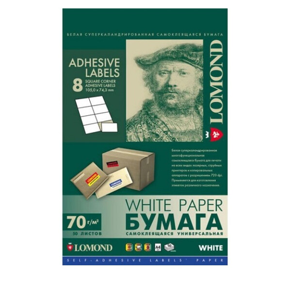 Бумага Самоклеящаяся бумага LOMOND универсальная для этикеток, A4, 8 делен. (105 x 74.3 мм), 70 г/м2, 50 листов