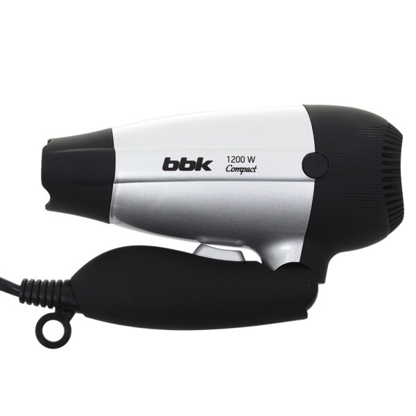 BBK BHD1200 представлен в черно-серебристом цвете и имеет стильный лаконичный дизайн. На основании фена расположена удобная петля для подвешивания. Вес прибора составляет всего 285 г, длина сетевого шнура – 180 мм. Насадка-концентратор помогает направить воздушный поток на отдельные пряди более точно и не рассеивает его. Прорезиненное покрытие SoftTouch надежно фиксирует фен в руке. Фен BBK BHD1200 особенно подойдет тем, кто постоянно находится в дороге, он не займет много места в вашем чемодане.