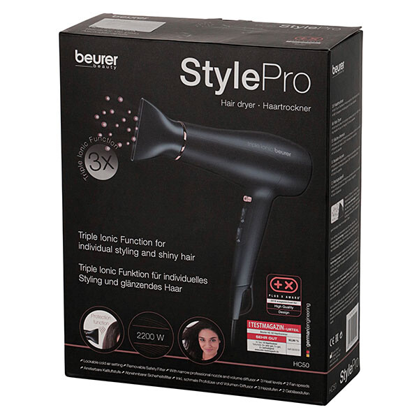 С помощью мощного фена Beurer HC50 вы не только быстро высушите волосы, но и сможете создать эффектные укладки. Вместе с прибором вы получите узкий концентратор для проработки отдельных прядей и диффузор для пышной, объёмной причёски.