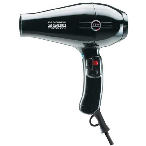 Сверхмощный фен Gammapiu 3500 Tormalionic мощностью в 2500 Вт создает выраженный направленный поток и отлично подходит для стайлинга и укладки причесок любой длины. Прекрасно справится с ускоренной сушкой и интенсивной работой по укладке густых волос. Турмалиновое покрытие решетки фена при нагревании является естественным ионизатором, благодаря чему создается эффект увлажнения, волосы становятся гладкими, блестящими и не пересушиваются. Режимам работы соответствуют комбинации из 2 скоростей воздушного потока и 3 уровней температуры. Воздухозаборник фена имеет съемный металлический фильтр, что продлевает срок службы прибора. Кнопки управления расположены сбоку, а кнопка холодного воздуха - по центру.