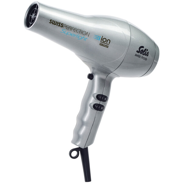 Фен Solis Swiss Perfection Superlight поможет быстро высушить и красиво уложить волосы любой длины. Данная модель практична и удобна в использовании, имеет эргономичную ручку и весит всего 420 грамм. Устройство имеет съемный воздушный фильтр. Фен оснащен режимом ионизации и подачи холодного воздуха, а также имеет защиту от перегрева. Фен работает в двух температурных режимах и в двух режимах интенсивности подачи воздуха. В комплект входит дополнительная насадка-концентратор. Петля для подвешивания обеспечит удобство хранения устройства.