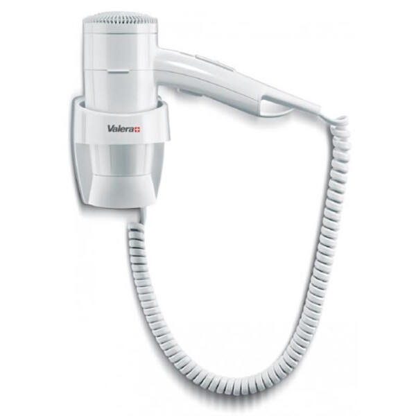 Компактный фен для настенного монтажа (держатель приобретается отдельно) со спиральным шнуром, его так же можно подвесить за петлю для подвешивания на шнуре.