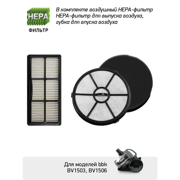 Воздушный фильтр HEPA, совместим с моделями пылесосов BBK BV1503 и BV1506.