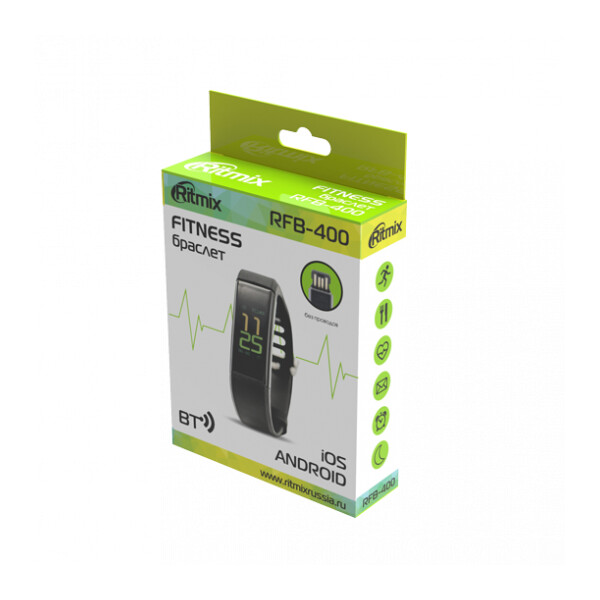 Ritmix RFB-400 — это фитнес-браслет со встроенным датчиком пульса. Следите за всеми необходимыми показаниями на ярком цветном экране: от мониторинга сна до пройденного расстояния, количества шагов и потраченных калорий. Благодаря функции уведомлений вы никогда не пропустите звонок или SMS. Браслет поможет вам отследить фазы сна, а будильник не даст проспать. Качественный встроенный аккумулятор обеспечит до 15 дней работы браслета на одном заряде. Модель полностью русифицирована, поддерживает Google Fit и совместима с уcтройствами на платформах iOS и Android. Не требует кабеля для зарядки, так как напрямую подключается к источнику питания.