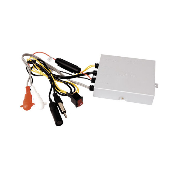 -FM модулятор получает аудио составляющую сигнала от DVD источника, преобразует ее в сигнал RF и по радиочастоте посылает на приемник вашей магнитолы. Вы настраиваете ее на нужную частоту точно также, как это происходит в случае с прослушиванием определенной радиостанции и получаете полноценное звуковое сопровождение фильмов через уже установленные динамики.