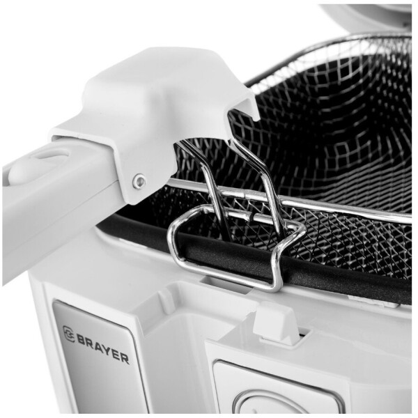 Фритюрница Brayer BR2832WH оптимальна для ресторана, кафе или в домашних условиях. С помощью модели можно приготовить овощи в кляре, крылья в панировке или картофель фри. Управление устройством осуществляется посредством механического регулятора и кнопок. Чаша рассчитана на 2,5 л масла. Благодаря световому индикатору удобно контролировать процесс работы. Максимальная температура достигает 190C. Фритюрница работает от сети с напряжением 220 В. С помощью смотрового окна осуществляется визуальный контроль за приготовлением блюд. Съемные детали очищаются под струей проточной воды губкой или салфеткой. Благодаря широкому основанию и противоскользящим ножкам обеспечивается устойчивое положение устройства на кухонной поверхности. Корпус изготовлен из высокопрочного пластика, который не подвержен сколам, царапинам и другим механическим повреждениям.