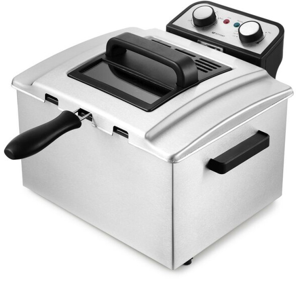 Фритюрница KITFORT КТ-2025 обладает серебристым пластиковым корпусом. За счет увеличенных размеров и чаши на 5 л масла прибор подходит для использования в кафе и других заведениях общепита. Закрытый нагревательный элемент сочетается с таймером, что делает устройство безопасным в использовании. За счет мощности 3270 Вт прибор справляется с зажариванием продуктов быстро. Смотровое окно позволяет наблюдать за процессом приготовления, не открывая крышку. Температура регулируется плавно, а 3 корзины для жарки позволяют приготовить сразу много еды.