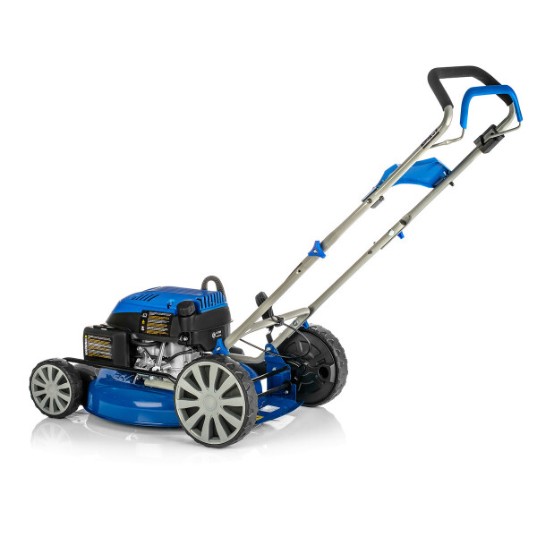 Газонокосилка бензиновая Hyundai L 5100М - бензиновая не самоходная модель без травосборника с боковым выбросом. Косилка оборудована четырёхтактным бензиновым мотором мощностью 3,8 лошадиные силы. Двигатель имеет верхнее расположение клапанов (OHV) и чугунную гильзу цилиндра. Так же на моторе предусмотрен праймер подкачки топлива в карбюратор, позволяющий запускать мотор одним рывком кик стартера. Объем двигателя 145 куб. см., позволяет ему вращать нож диаметром в пол метра.