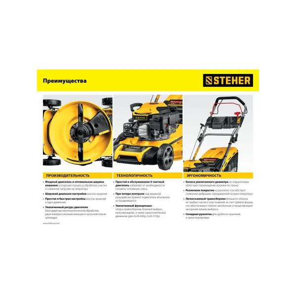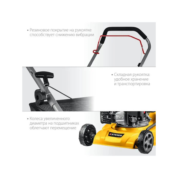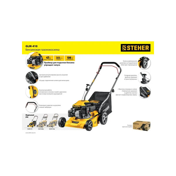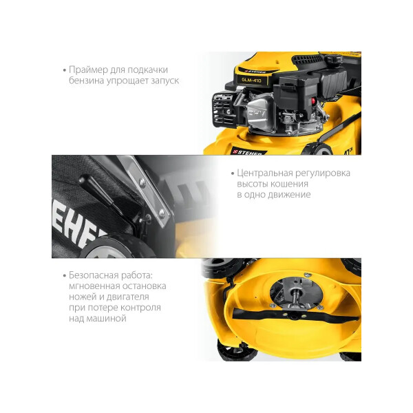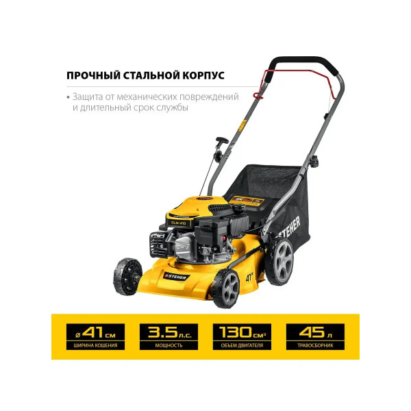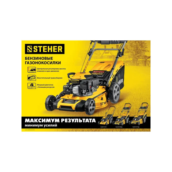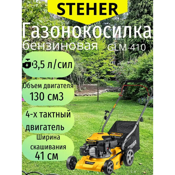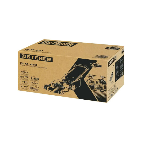 Бензиновая газонокосилка STEHER GLM-410 подходит для кошения газонной травы на садовых участках и придомовых территориях.