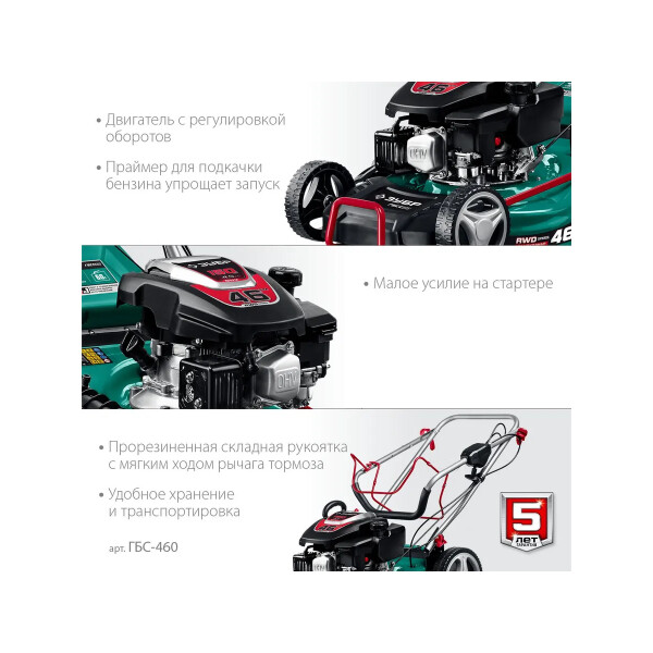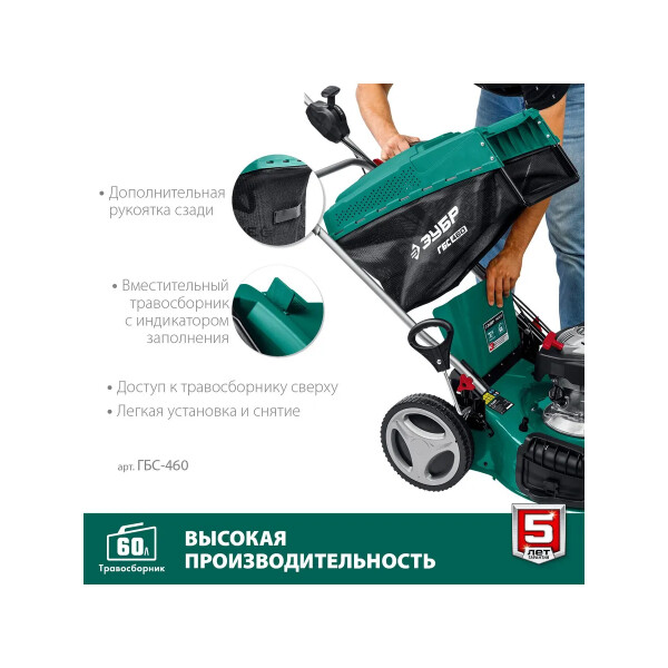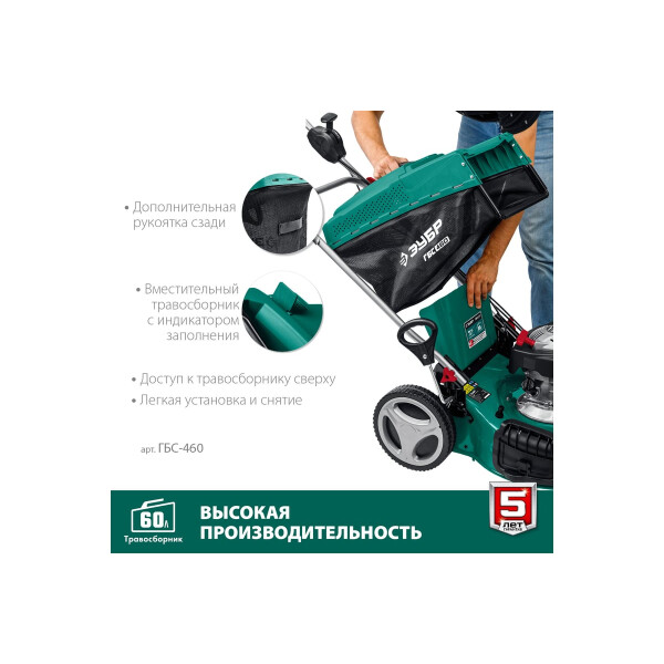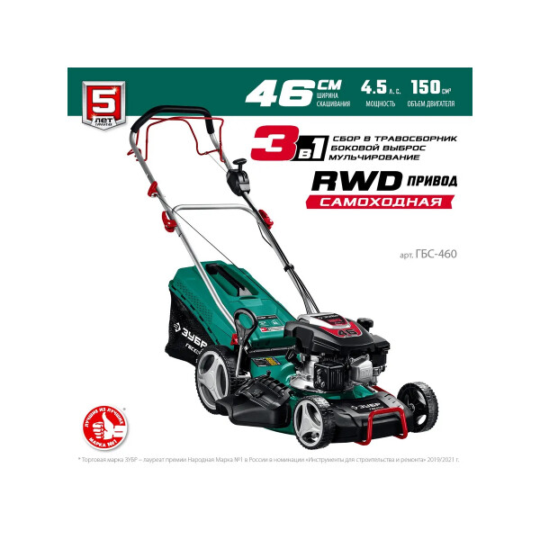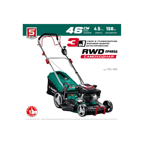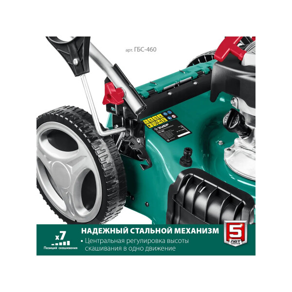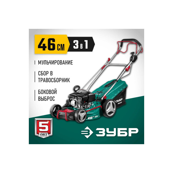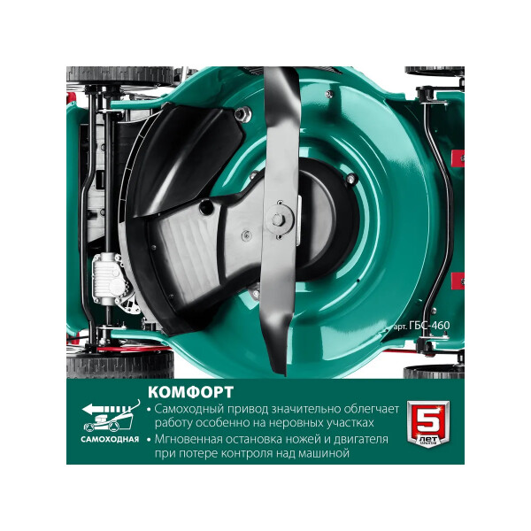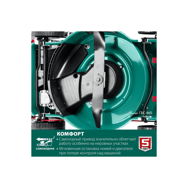 Самоходная бензиновая газонокосилка ЗУБР ГБС-460 незаменимый помощник для стрижки густой растительности на садовых и придомовых территориях. Модель оборудована мощным бензиновым двигателем, он обеспечивает автономную работу в любой части участка.