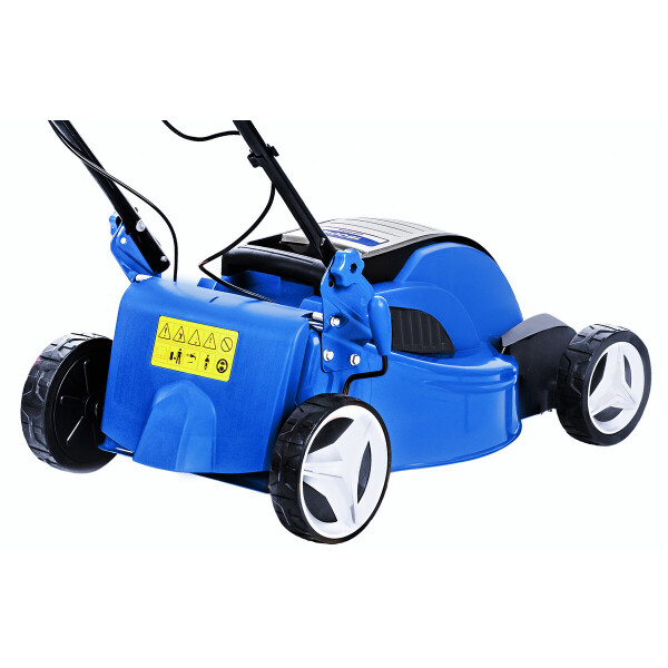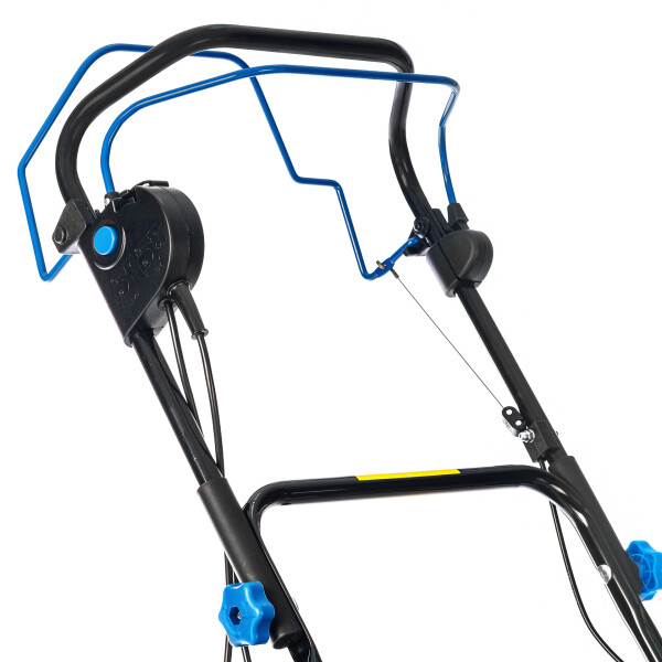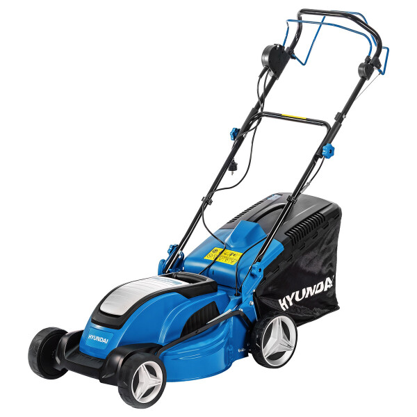 Самоходная электрическая газонокосилка HYUNDAI LE 4600S Drive оснащена турбиной и аэро-ножом, которые создают сильный воздушный поток, что способствует лучшей заполняемости травосборника. Имеет привод на задние колеса, что снижает нагрузку на оператора. Большие колёса гарантируют удобство движения и отличную маневренность на любых участках, при этом щадят газон. Высота среза регулируется с помощью рычага, который имеет семь положений: 30, 35, 40, 45, 55, 65, 75 мм.