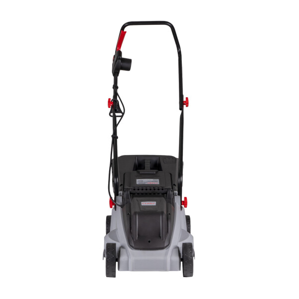 Агрегат отличается экологичностью, электрической безопасностью и легкостью обслуживания. Складная конструкция обеспечивает компактность при хранении и транспортировке косилки. Мусоросборник объемом 30 литров позволяет выполнять долгую работу без перерыва на очистку бака, что экономит время.