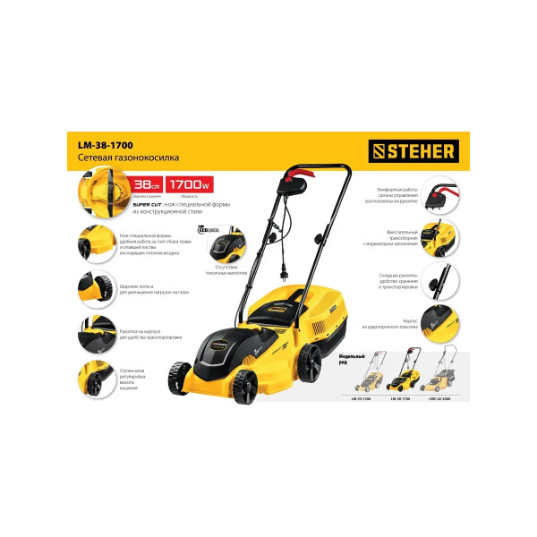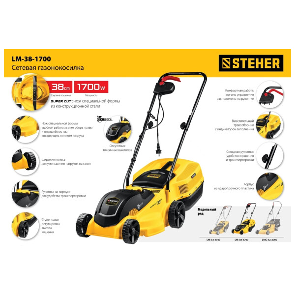 Сетевая газонокосилка STEHER LM-38-1700 незаменимый помощник в уходе за газоном вашем участке.