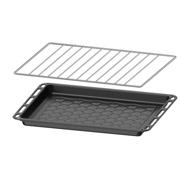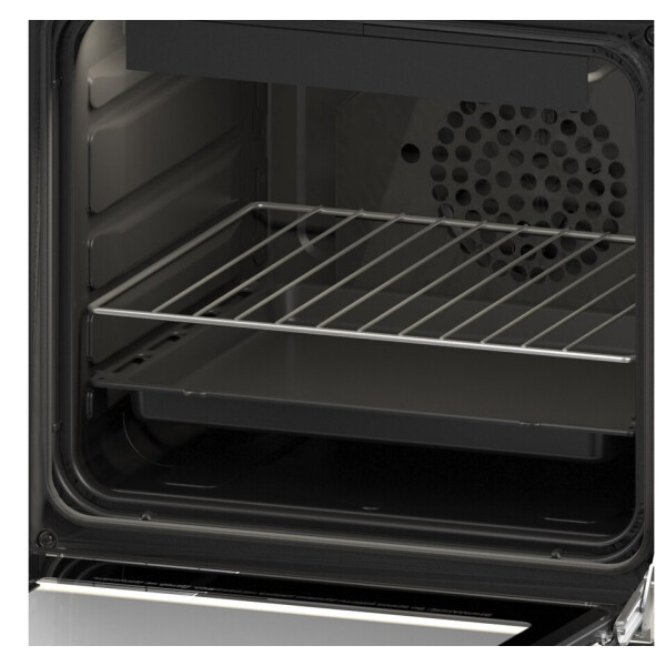 Духовка имеет 9 режимов работы. Электрическая духовка оборудована терморегулятором, конвектором и электрическим грилем. 4 пары штампованных направляющих позволяют разместить несколько противней одновременно. В комплекте с плитой прилагается решётка, эмалированный поддон и алюминиевый противень.