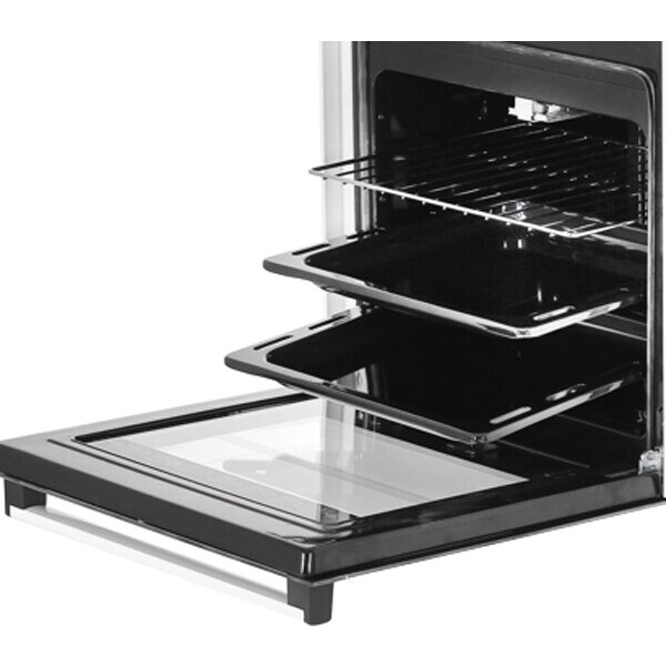 Готовьте кулинарные шедевры, балуя домочадцев и удивляя гостей, в посуде любого диаметра о ее устойчивом положении позаботятся чугунные решетки на поверхности De Luxe. У вас не возникнет необходимости то и дело открывать дверцу духового шкафа, чтобы проконтролировать течение кулинарного процесса на помощь придет встроенная подсветка. Гарантом компактного хранения кухонной утвари станет предусмотренный в основании плиты вместительный ящик.